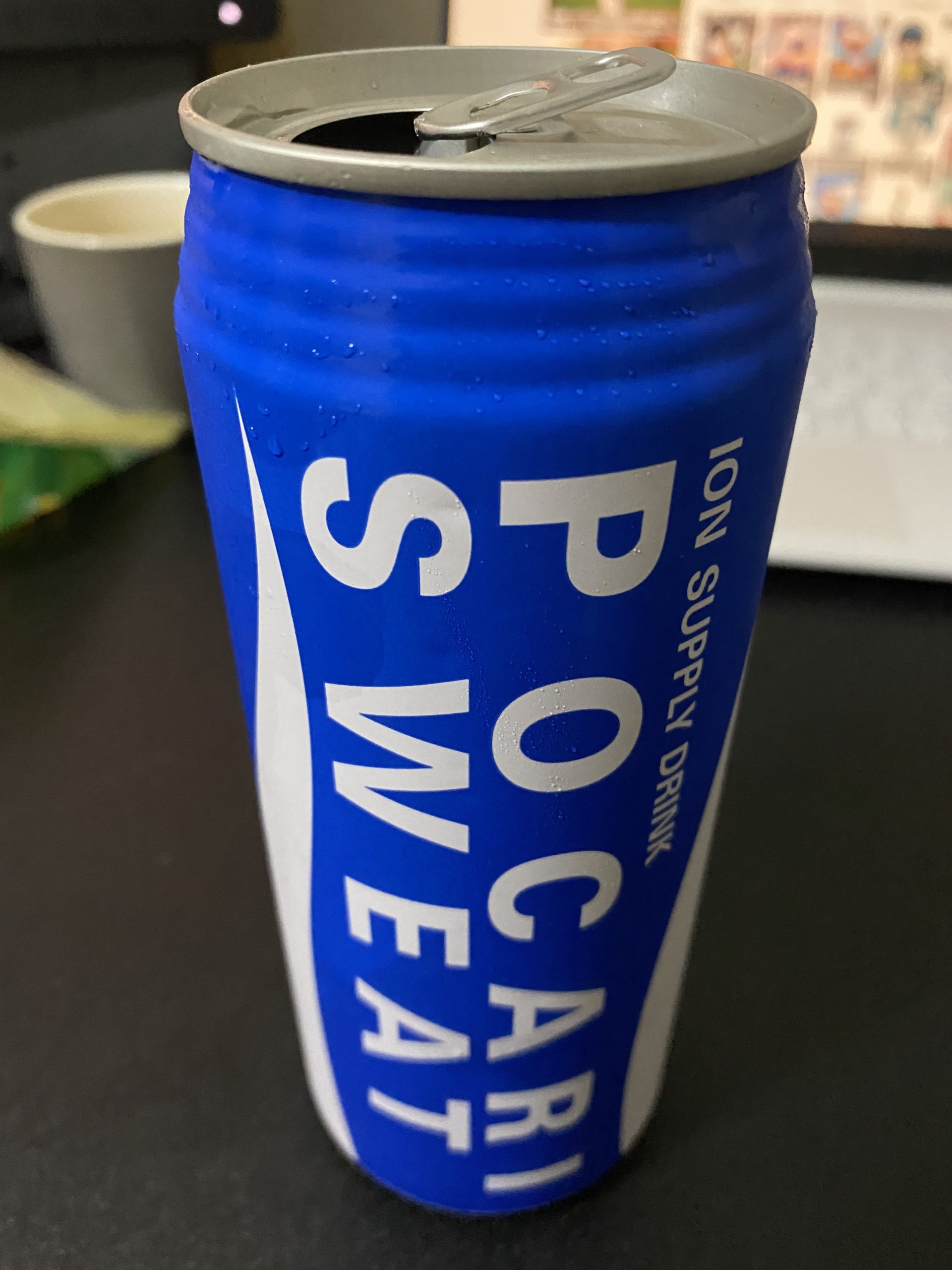 そう、缶のポカリスエットです。480㎖の青と白の最強の飲み物です。