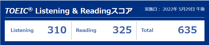 5月29日に受験したTOEICの結果が帰ってきました。