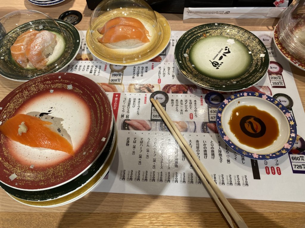 その施設の中の回転ずしに目をつけ、順番を待ちながらも寿司を食べました。