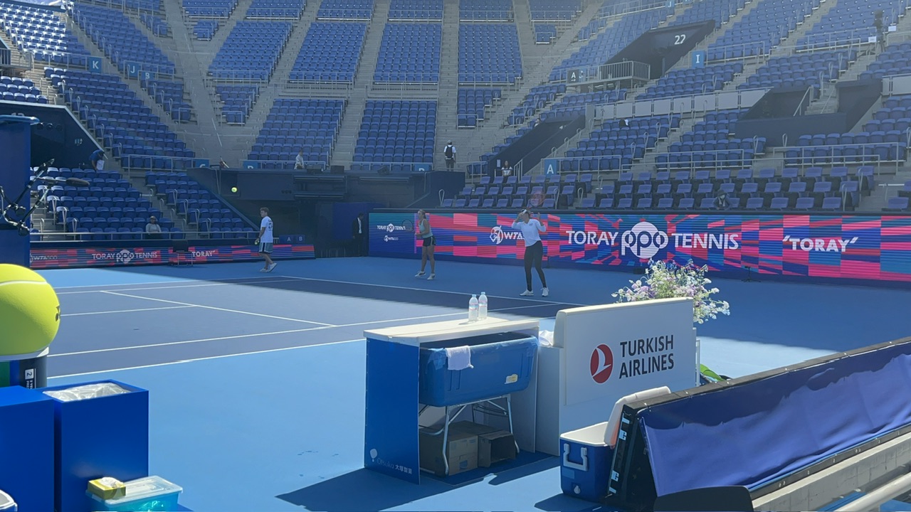 今年はコートサイドに溝ができたので選手との2ショットが難しい仕様に代わっていたので、