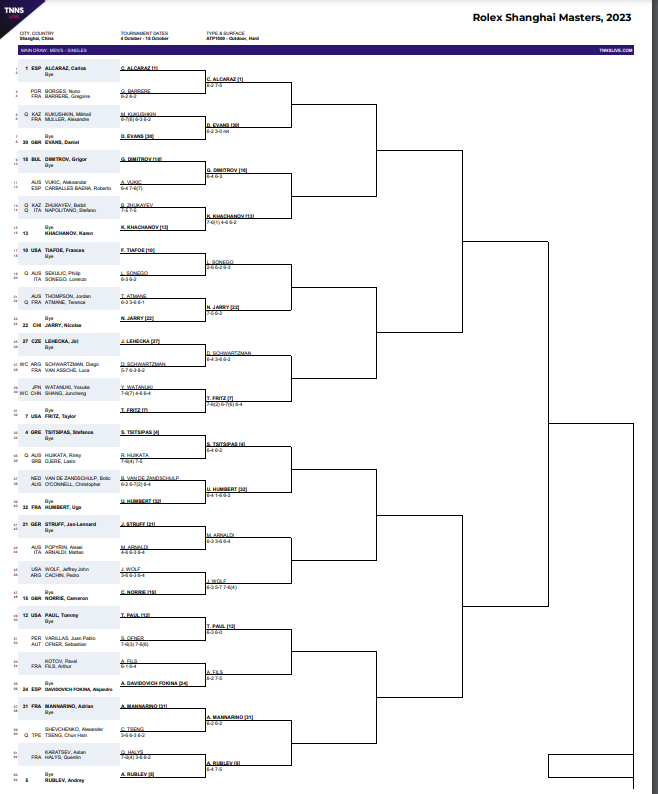(参考:TNNS Live ROLEX SHANGHAI MASTERS 4 Oct – 15 Oct 2023,
