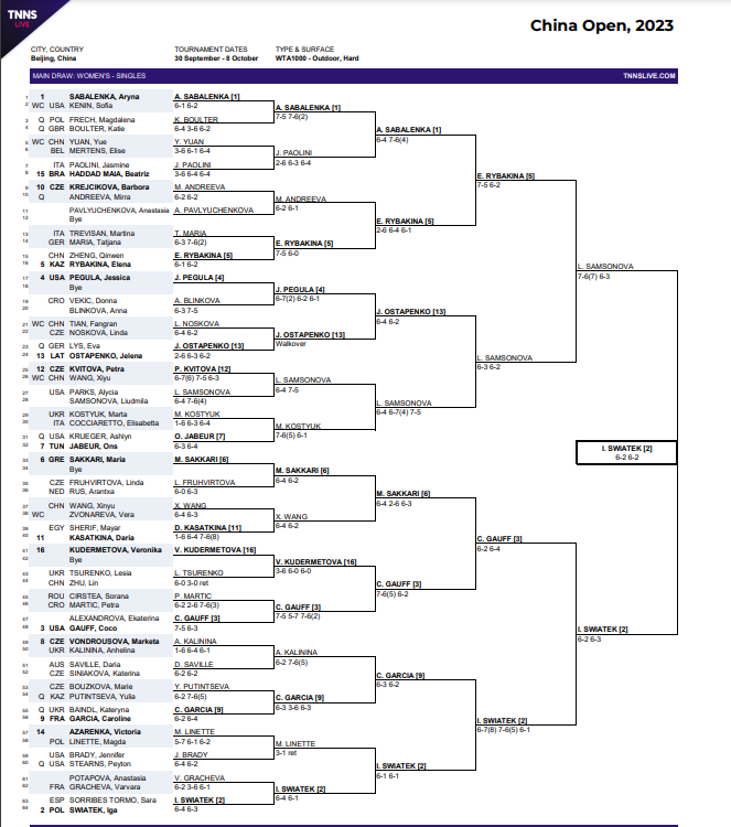 CHINA OPEN 30 Sep – 8 Oct 2023)