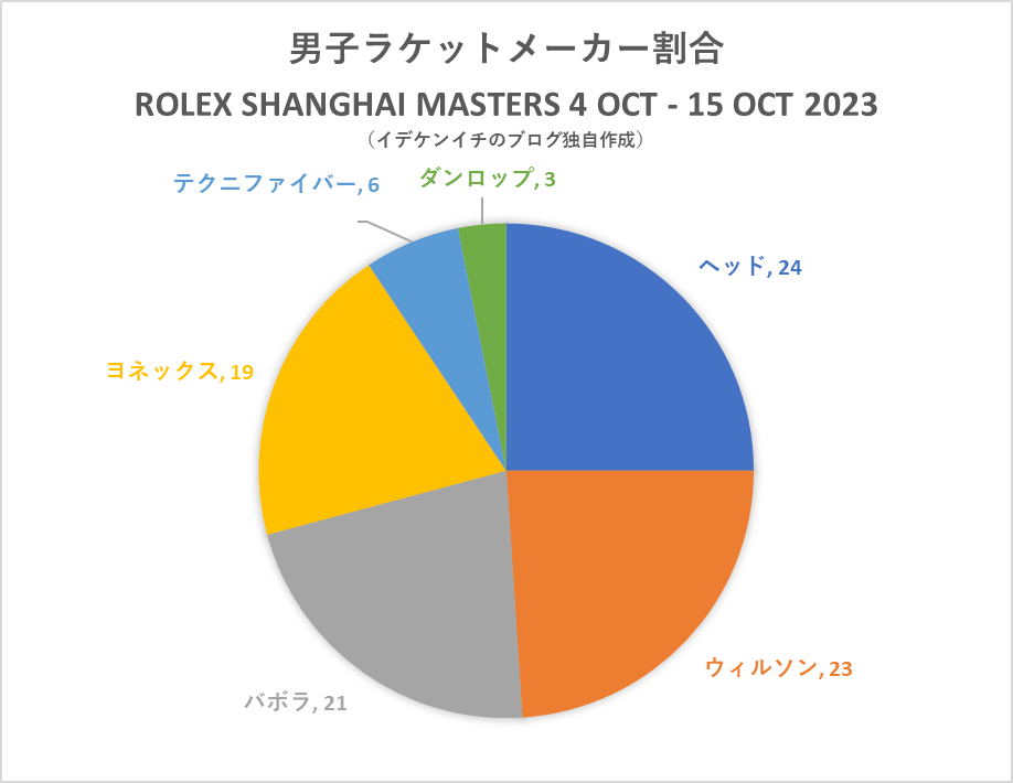ヘッド 24 ウィルソン 23 バボラ 21 ヨネックス 19 テクニファイバー 6 ダンロップ 3 合計96