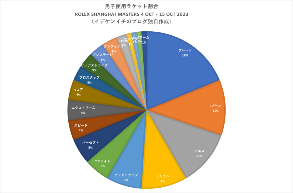 1000ポイントの大会である、男子は上海ロレックスマスターズ、女子はチャイナオープンの出場選手のラケットを調べてみて統計をだしたいと思います。