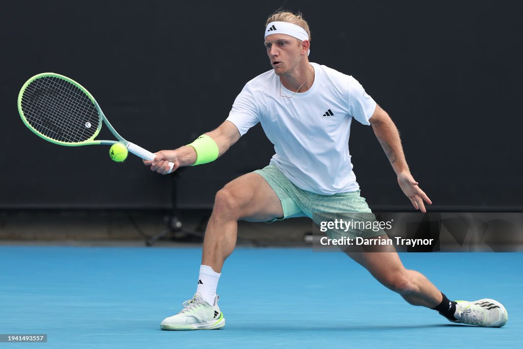 MELBOURNE, AUSTRALIA – JANUARY 18: Alejandro Davidovich Fokina of Spain plays a forehand in their round two singles match against Nuno Borges of Portugal during the 2024 Australian Open at Melbourne Park on January 18, 2024 in Melbourne, Australia. (Photo by Darrian Traynor/Getty Images)